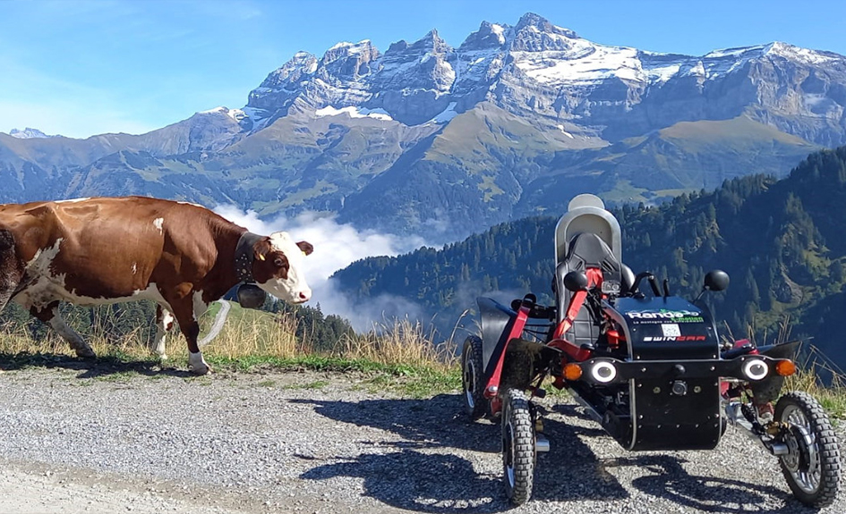 Le Swincar monoplace offre une grande liberté de mouvement grâce à sa suspension pendulaire unique qui permet de franchir des obstacles et des terrains accidentés en toute sécurité.